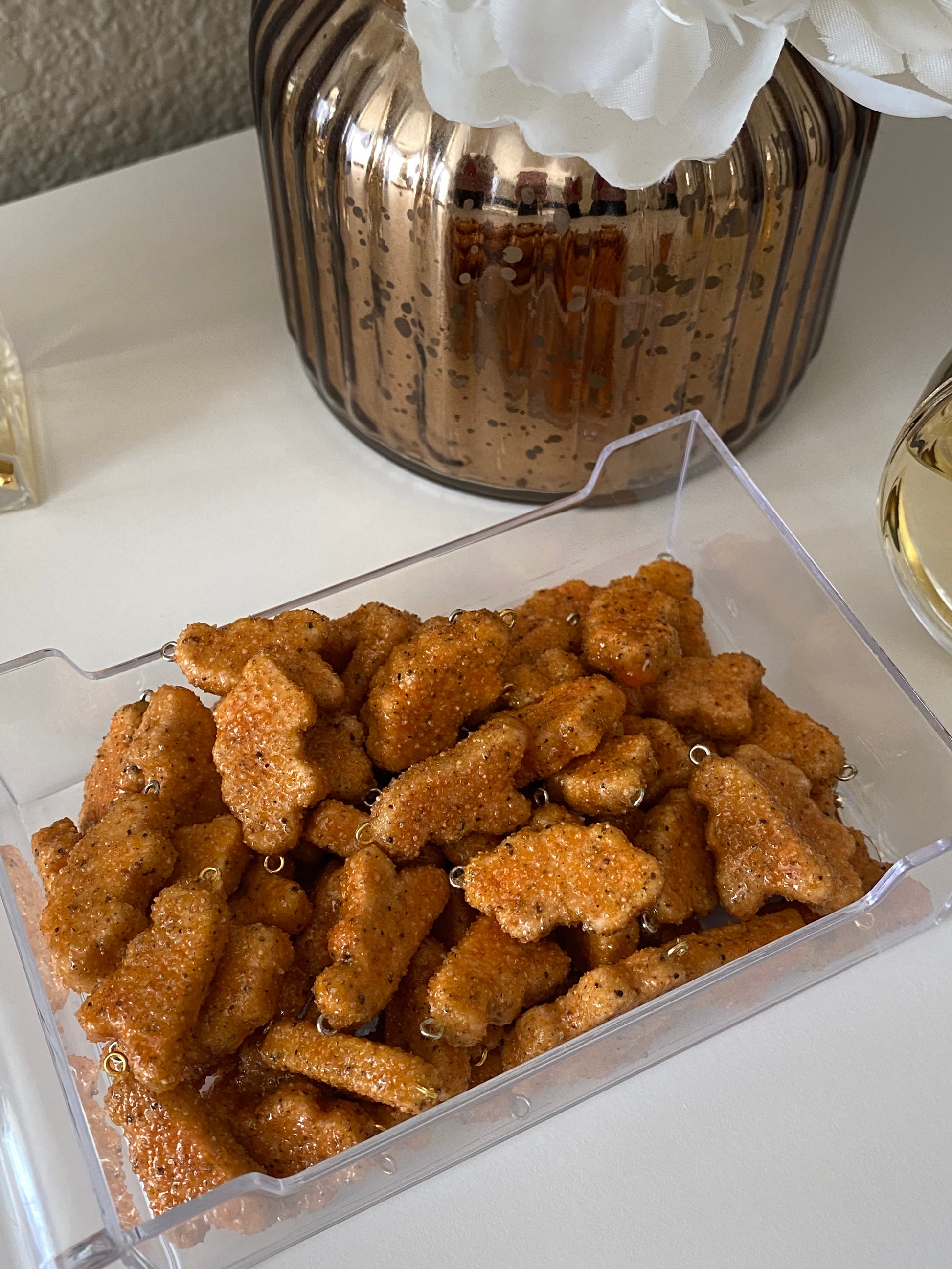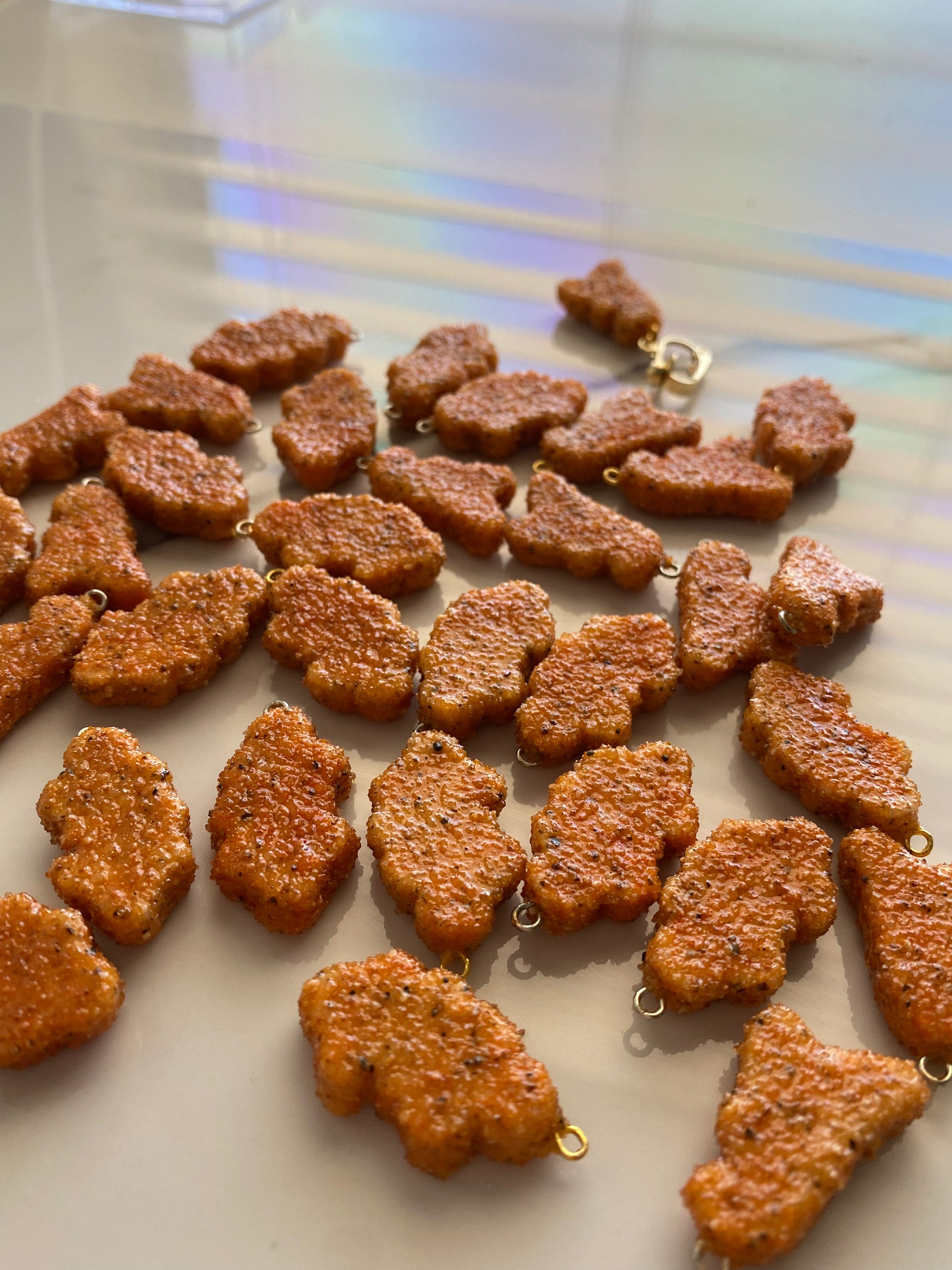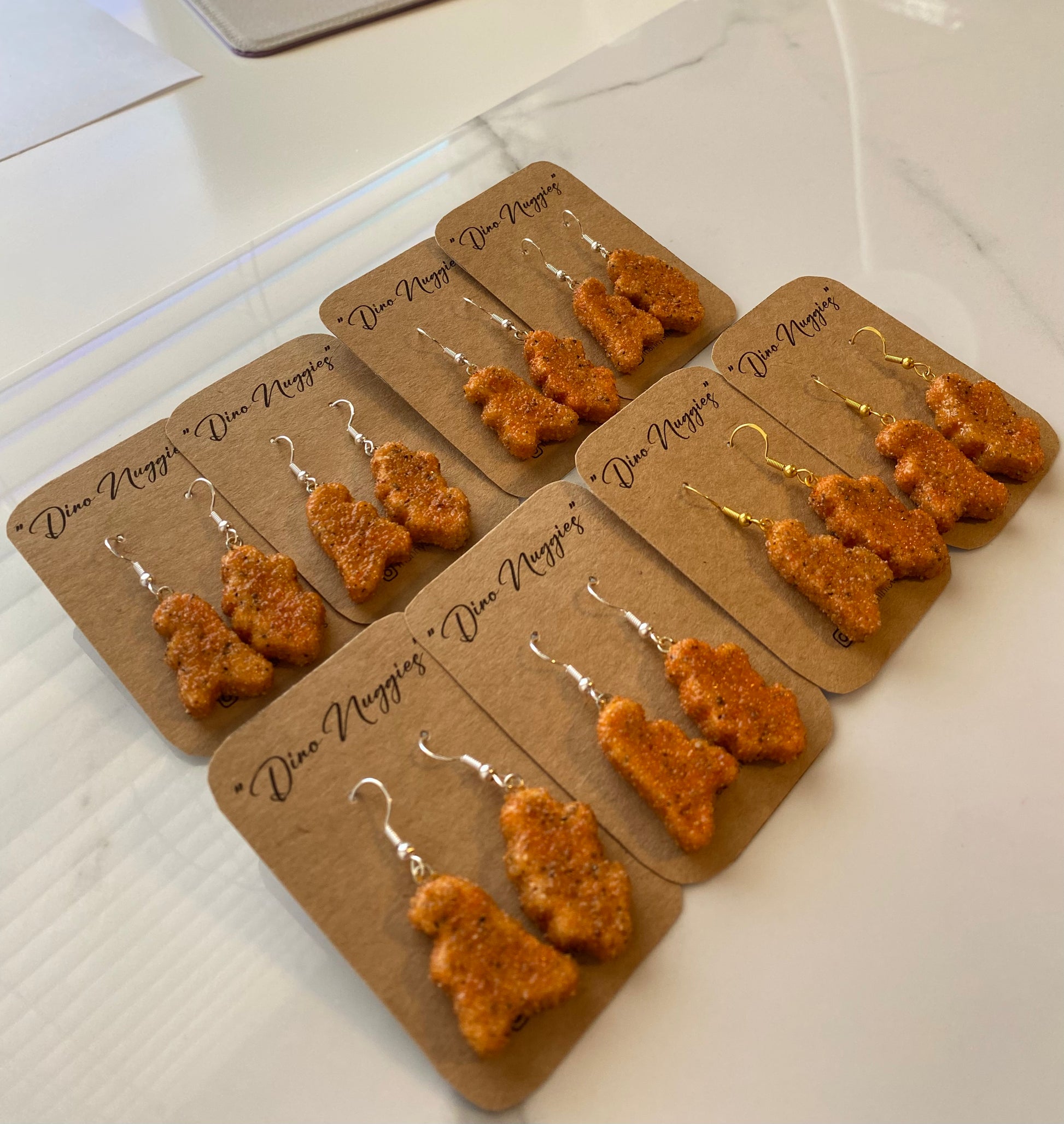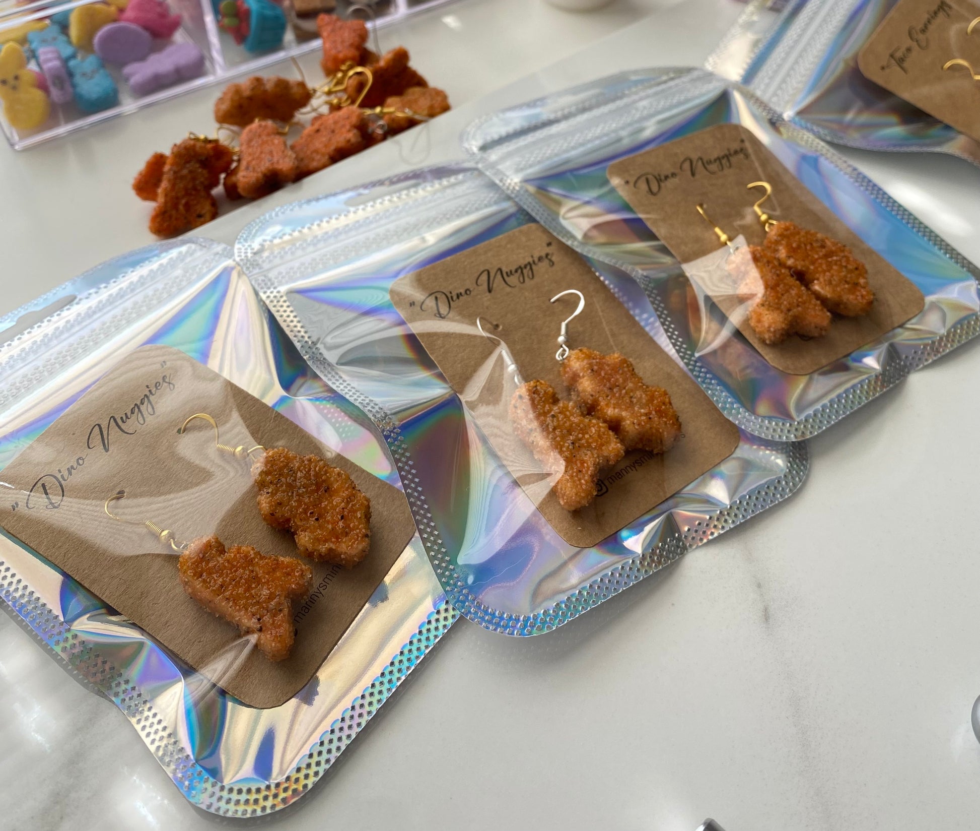 these tiny Dino nugget earrings are too cute not to wear! the handmade earrings are a perfect gift for your friends, kids, or yourself!!