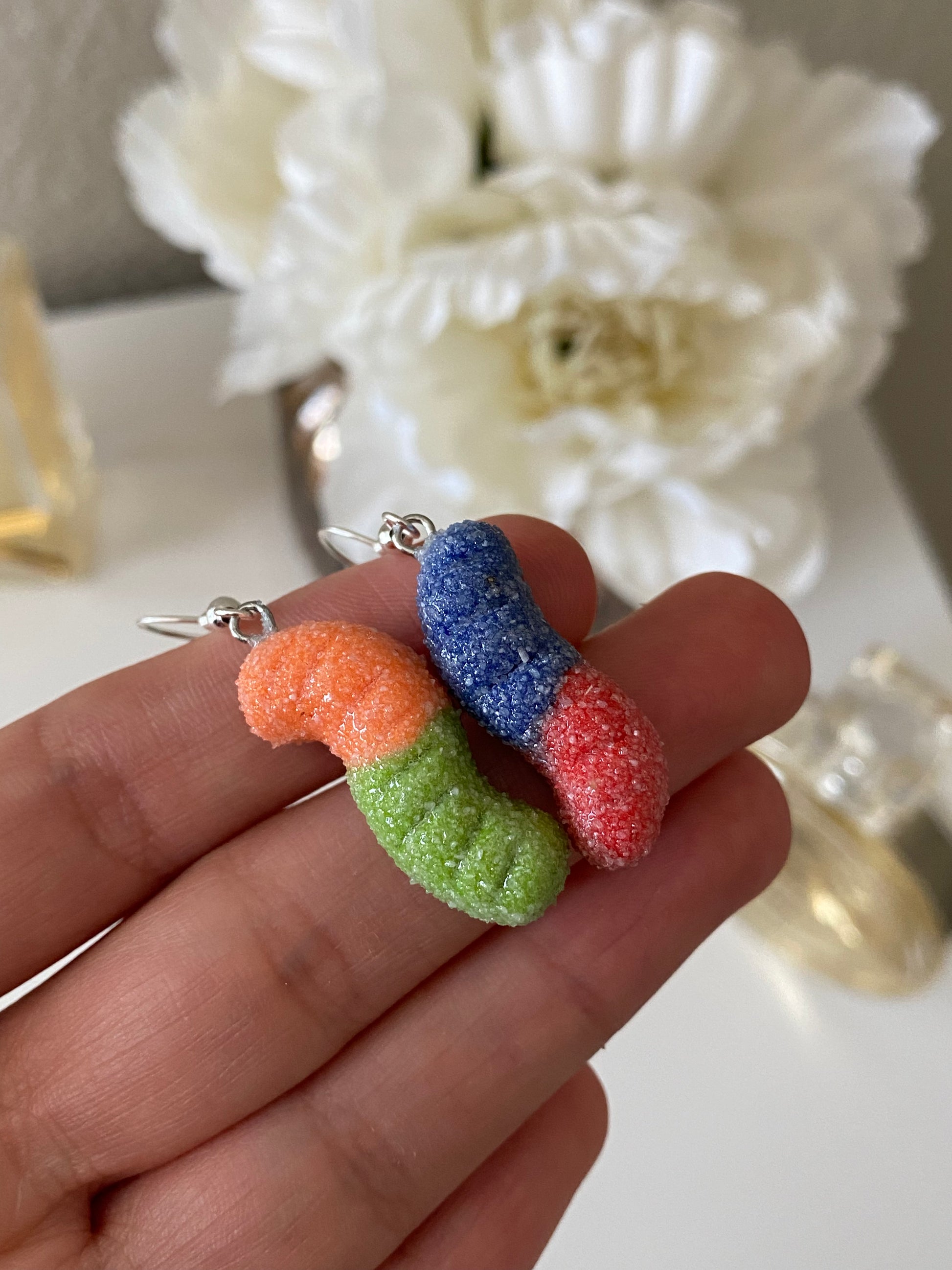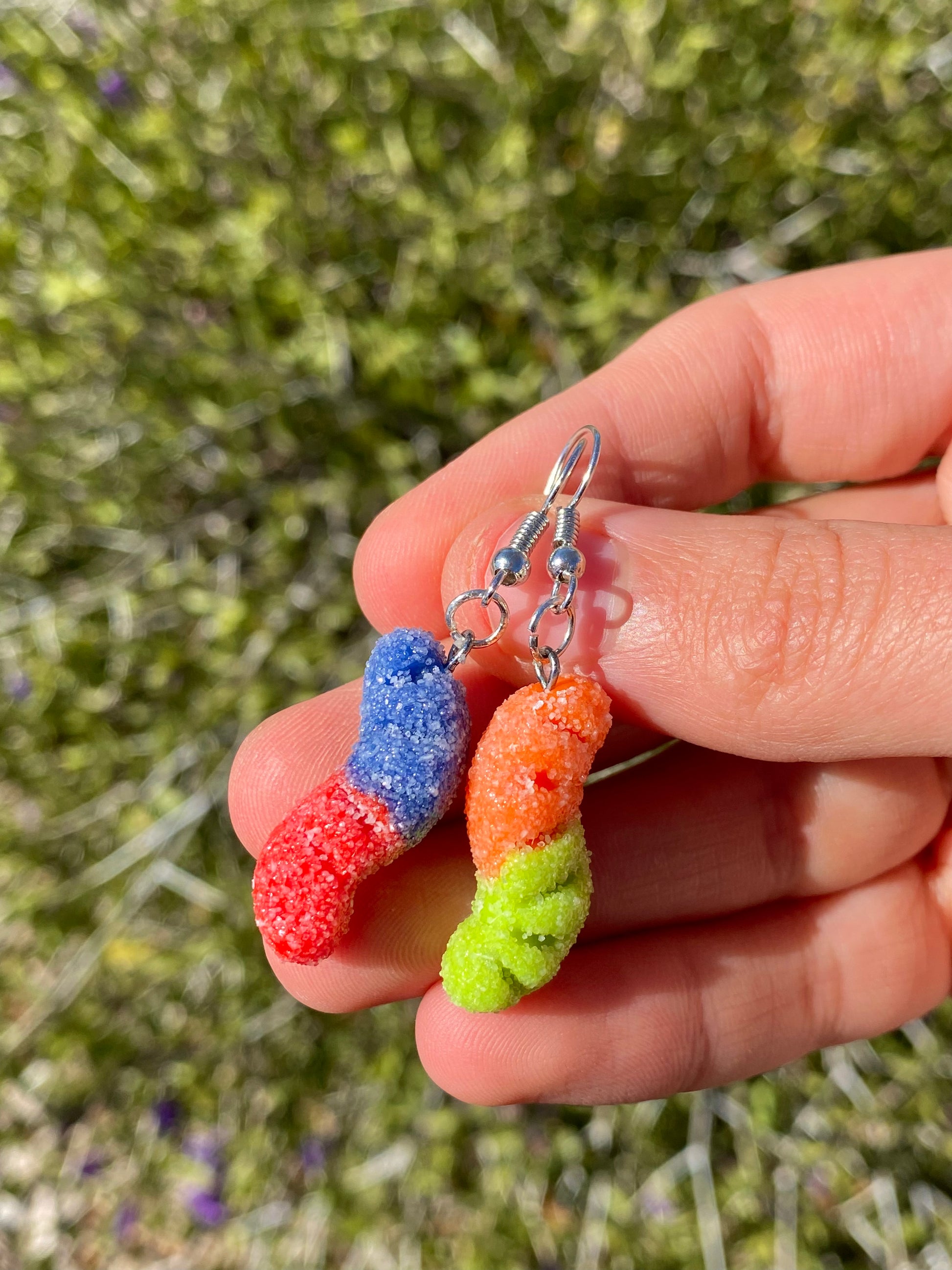 Sour gummy worm earrings
