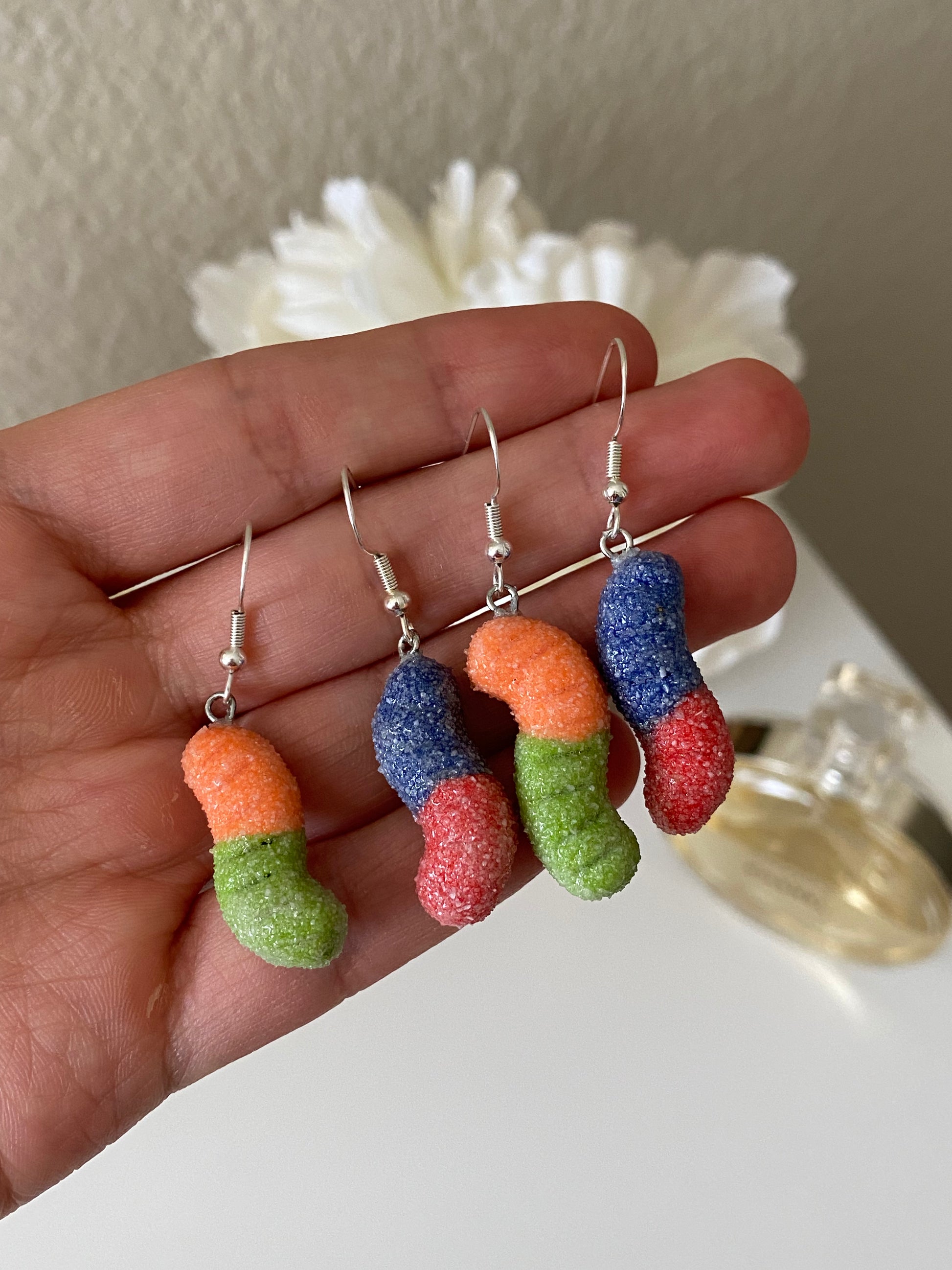 these sour gummy worm earrings are too cute not to wear! these earrings are a perfect gift for your friends, kids, or yourself!!